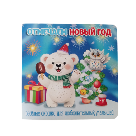 Книжка-картонка с окошками "Отмечаем Новый год" из серии "Загляни в окошко" - литературно-художественное издание для детей до трёх лет, для чтения взрослыми детям.
