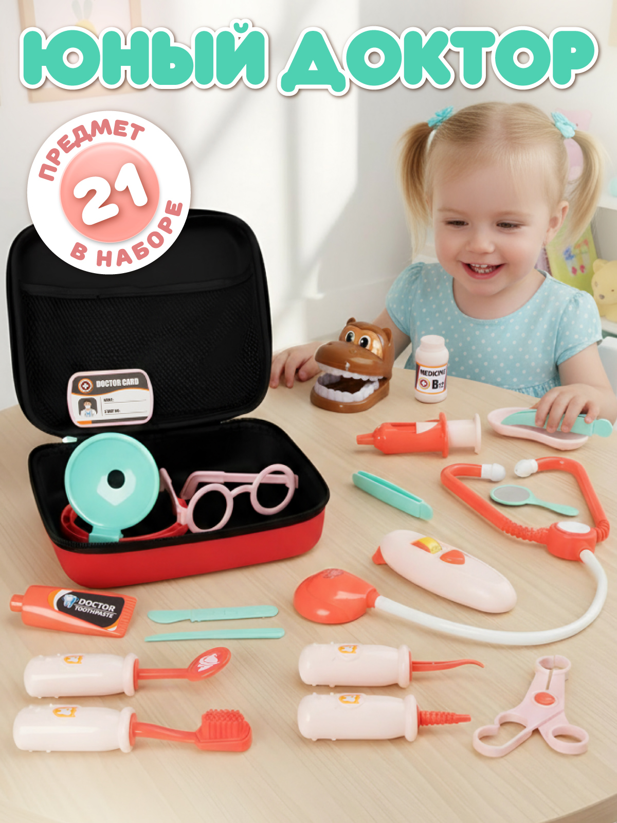 Игровой набор «Юный доктор» станет прекрасным подарком для малыша, с ним ребёнок окунётся в удивительный мир медицины и попробует себя в роли настоящего врача. Играя с набором, дети смогут весело и с пользой провести время, а также смогут научиться общаться с пациентами, проявлять сочувствие и заботу. Кроме того, яркие цвета и интересные детали набора способствуют развитию воображения и фантазии. В процессе игры малыши развивают мелкую моторику рук, логическое мышление, а также осваивают важные социальные и бытовые навыки.