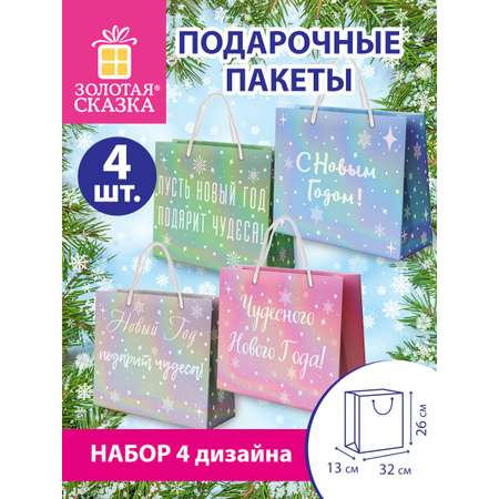 Пакет подарочный новогодний Золотая сказка пакетики для подарков и сладостей набор 4 штуки