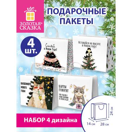 Пакет подарочный новогодний Золотая сказка пакетики для подарков и сладостей набор 4 штуки крафт