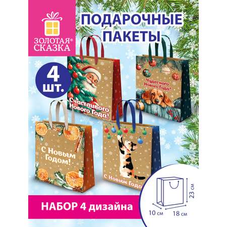Пакет подарочный новогодний Золотая сказка пакетики для подарков и сладостей набор 4 штуки крафт