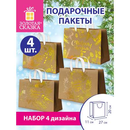 Пакет подарочный новогодний Золотая сказка пакетики для подарков и сладостей набор 4 штуки