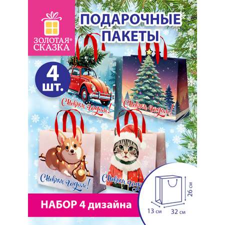 Цена на Пакет подарочный новогодний Золотая сказка пакетики для подарков и сладостей набор 4 штуки - 435 ₽.