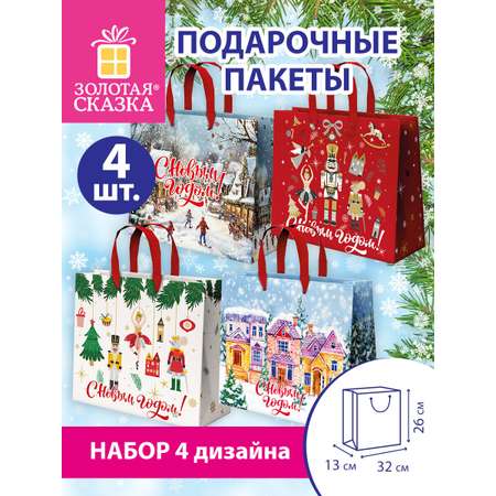 Пакет подарочный новогодний Золотая сказка пакетики для подарков и сладостей набор 4 штуки
