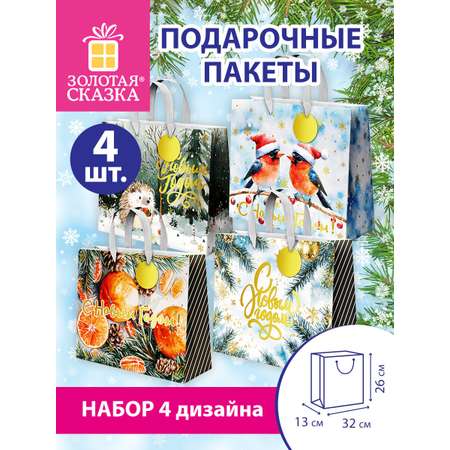 Пакет подарочный новогодний Золотая сказка пакетики для подарков и сладостей набор 4 штуки