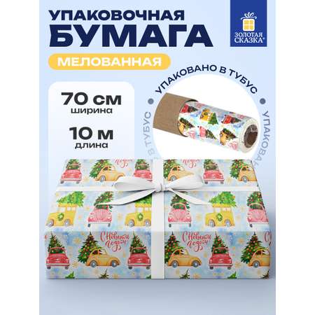 Упаковочная бумага Золотая сказка для новогодних подарков в рулоне 70 см х 10 м Машинки