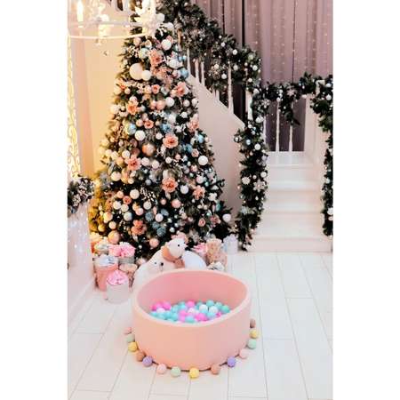 Детский сухой бассейн, диаметром 80 см и комфортной для малыша высотой 33 см выполнен из ткани интерлок, которая мало впитывает грязь и пыль, относится к классу натуральных тканей. Толщина поролона, из которого сшит бассейн, составляет 4 см. Круглое поролоновое дно вставляется в потайное дно из ткани, благодаря чему шарики не забиваются под матрас во время игр, а поролон встает в распорку, усиливая мягкий каркас бассейна.