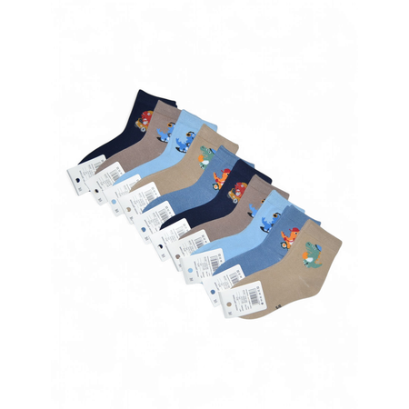 Большой набор из 10 пар детских носков с яркими принтами динозавров — удобное и выгодное решение на каждый день. Универсальные расцветки подойдут и мальчикам, и девочкам. Весёлые динозавры в очках, на самокатах, с мячами и машинками — каждый рисунок вызывает улыбку и интерес у ребёнка.