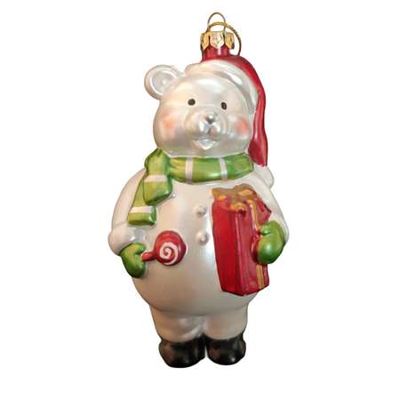 Ёлочное украшение Магия праздника Мишка с подарком и леденцом 14 см