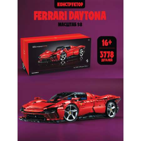 Набор конструктора представляет собой реалистичную модель спорткара Ferrari Daytona 1:8, состоящий из 3778 деталей. Перед вами идеальный конструктор для коллекционеров и любителей техники. 3778 элементов позволяют воссоздать характерные черты спорткара с высокой степенью реализма и функциональности. Это огромная реалистичная коллекционная модель. Размер машины в собранном виде составляет 25х59 см. Конструктор модели Ferrari — стильная и детализированная модель, которую приятно собирать, позже пополнить ей коллекцию автомобилей. Сборка обещает быть длительной и увлекательной, а игра - по-настоящему интересной!