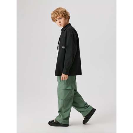 Детские брюки карго для мальчика — это стильная модель для создания множества модных образов. Объемные брюки изготовлены из качественного материала, дополненного трикотажной подкладкой, которая добавляет в ношение комфорта и тепла. Пояс на резинке обеспечивает удобную посадку для разных типов фигуры, а шнурок со стоппером позволяет дополнительно отрегулировать полноту. Практичности добавляют прорезные карманы, расположенные в боковых швах, а большие накладные с клапанами, нашитые на уровне колен, придают стильный акцент. Низ штанин с эластичными шнурками и стопперами, позволяющими придать брюкам желаемый вид. Просторный крой делает ношение удобным и позволяет легко двигаться. Модель представлена в двух цветах: черном и серо-голубом. Стилизуйте брюки в образе на каждый день со свитшотом (20110170181) и кедами.
