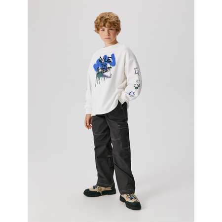 Детские утепленные брюки с контрастной отстрочкой для мальчика — это стильная модель для создания демисезонных образов. Объемные и просторные брюки на мягкой трикотажной подкладке подходят для ношения в холодное время года. Пояс на резинке обеспечивает комфортную посадку на разные типы фигуры и дополнительно регулируется шнурком с пластиковым фиксатором, позволяющим подогнать брюки под индивидуальные параметры ребенка. Отсутствие застежки и пуговиц делают ношение ещё более удобным. Практичности добавляют карманы по бокам и на спинке, а один накладной карман на уровне левого колена вносит стильный акцент. Изделие декорировано контрастными строчками, что добавляет ему и визуального интереса. Стилизуйте брюки с контрастным свитшотом (20110170173), чтобы создать стильный повседневный образ.