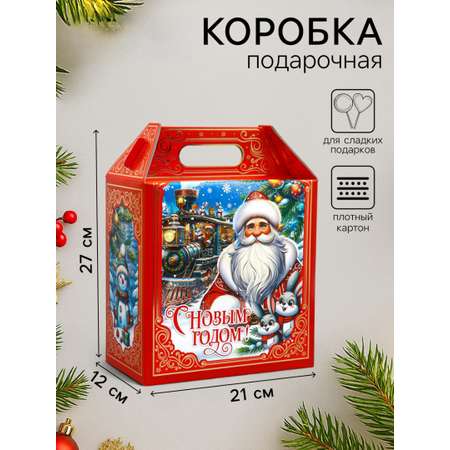 Коробка подарочная новогодняя Sima-Land "Путешествие на паровозе", 21 х 12 х 27 см