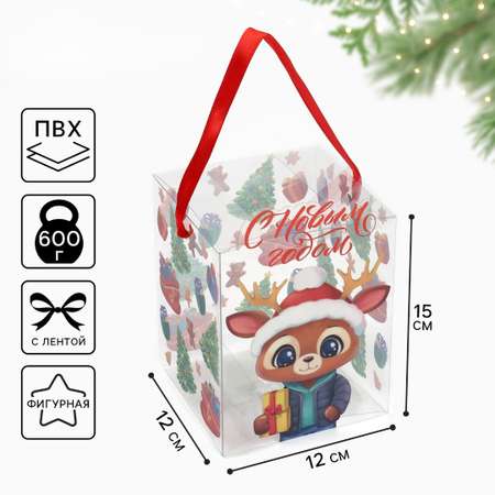 Подарочная коробка ПВС Дарите Счастье "С Новым годом!", 12 х 15 х 12 см