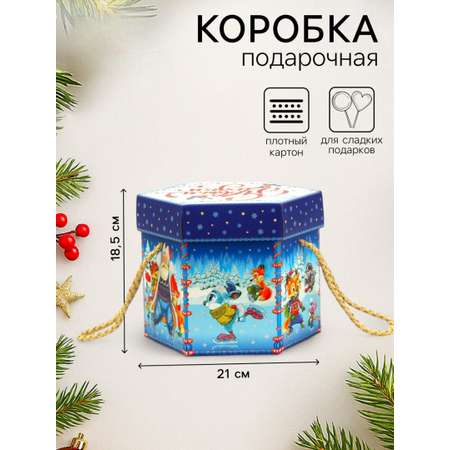 Подарочная коробка новогодняя Sima-Land Новогодняя, шестигранник малый "Зимние забавы" с веревочными ручками