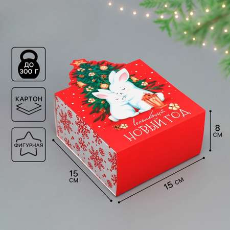 Коробка складная Дарите Счастье "Волшебный новый год", зайки, 15 х 15 х 8 см