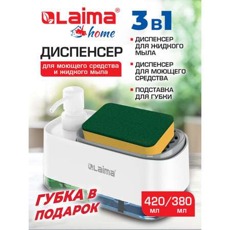 Диспенсер дозатор для мыла и моющего средства + губка DUET от LAIMA HOME — идеальный органайзер для кухни и ванной комнаты, который помогает поддерживать порядок и чистоту в доме. Этот универсальный диспенсер для моющего средства на кухню сочетает в себе удобство и экономичный расход средств благодаря продуманной системе дозирования. Компактный и стильный аксессуар для ванной комнаты и кухни оснащён двумя емкостями: одна для мыла, другая — для моющего средства, что делает его незаменимым в наборе кухонных принадлежностей. Резиновые вставки предотвращают скольжение, а встроенная губка позволяет быстро справляться с мытьем посуды и влажной уборкой. Если вы ищете функциональный органайзер для дома, который объединит кухонные средства и аксессуары для ванной, этот дозатор станет вашим надёжным помощником!