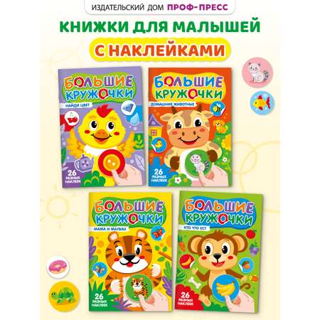 Книжка с наклейками Проф-Пресс большие кружочки. 4 шт. Домашние животные+кто что ест+мама и малыш+найди цвет
