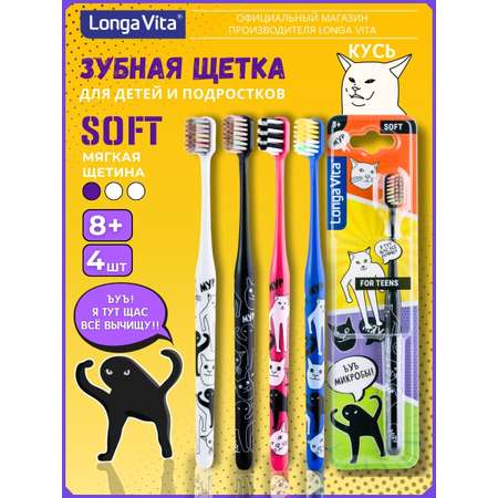 Цена на Зубная щетка классическая LONGA VITA от 8 лет 4 шт. - 679 ₽.