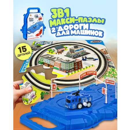 Трасса для машинок Пожарная команда от 1TOY – это игровой набор 2 в 1: большие макси пазлы и увлекательный трек с машинкой для малыша. Автодорога детская состоит из 15 деталей, которые легко соединяются. В комплекте заводная полицейская машина. Размер деталей продуман для удобства: толщина пазлов 0,3 см, длина и ширина – 6,5 см. Размер собранной автотрассы – 17х17 см. Игрушечная дорога упакована в пластиковый контейнер, его размер – 20,5х24,5х4,5 см. Дорога автомобильная детская из мягкого и прочного пенокартона, гигантские пазлы удобно держать в маленьких ручках, они лёгкие, приятные на ощупь и подходят для самостоятельной сборки. Гоночная трасса для детей с яркими элементами, которые помогают создавать интересные сюжеты, а сам процесс детской игры развивает воображение, внимание и логику. Напольная дорога для машинок стимулирует мелкую моторику и становится первым шагом к знакомству с правилами дорожного движения. Дорога для машинок детских дает возможность малышу не только играть, но и придумывать собственные истории о полицейской службе. Дорога с машинками автотрек подходит для малышей от 3-х лет, гоночная трасса с машинкой – это полезная игрушка для мелкой моторики для детей, развивающая игрушка для малышей, игрушка для мальчиков и игрушка для девочек. Пазл дорога для машинок увлекает ребёнка надолго, дарит радость и помогает развиваться в игровой форме.