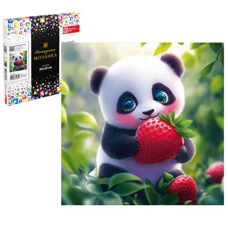 Алмазная мозаика МАЛЕНЬКАЯ ПАНДА 20x20 см (22 цветов страз, холст на подрамнике с напечатанной картиной, покрытый клеевым слоем и защитной пленкой, пакеты со стразами, стилус, лоток для страз, силикон для страз, клей, подвесы для подрамника, пинцет металлический, схема, дополнительные пакеты с zip-молнией, стикеры для нумерации zip-пакетов в комплекте, форма страз: квадратная, тип выкладки: полная, картонная коробка).