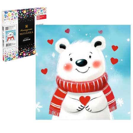 Алмазная мозаика 20x20 см (14 цветов страз, холст на подрамнике с напечатанной картиной, покрытый клеевым слоем и защитной пленкой, пакеты со стразами, стилус, лоток для страз, силикон для страз, клей, подвесы для подрамника, пинцет металлический, схема, дополнительные пакеты с zip-молнией, стикеры для нумерации zip-пакетов в комплекте, форма страз: квадратная, тип выкладки: полная, картонная коробка).