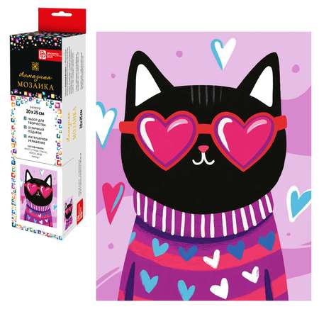 Алмазная мозаика (набор для творчества) КОТ В ОЧКАХ. Размер: 20x25 см, 13 цветов страз, холст с напечатанной картиной, покрытый клеевым слоем и защитной пленкой, пакеты со стразами, стилус, лоток для страз, силикон для страз, клей, пинцет металлический, схема, дополнительные пакеты с zip-молнией, стикеры для нумерации zip-пакетов в комплекте, форма страз: квадратная, тип выкладки: полная, картонная коробка с европодвесом.
