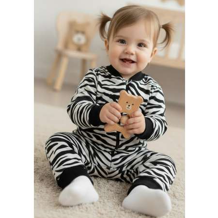 Комбинезон для девочки, на молнии. Молния начинается несколько ниже пупка. Собачка на молнии защищена планкой, чтобы не травмировать шею ребенка.