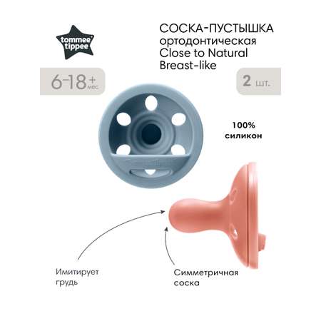 Tommee Tippee соска-пустышка силиконовая Close to Natural Breast-like, 6-18 мес., 2 шт.