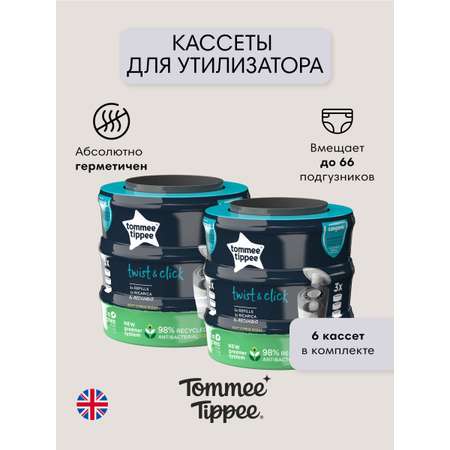 Tommee Tippee кассеты (6 шт.) для утилизатора, накопителя для подгузников Twist & Click