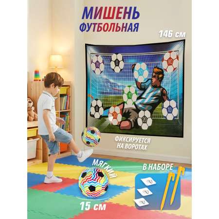 Детский набор для игры в футбол для дома и улицы. Мячик с мягким наполнителем и элементами липучками, за счет липучек снаряд прикрепляется к текстильной поверхности конструкции. На спортивной игрушке нарисованы очки, можно суммировать баллы и соревноваться. Два варианта расположения, крючки и колышки в комплекте. Компактные размеры игрушки, удобно хранить. Изготовлено из безопасных материалов в интересной задумке.