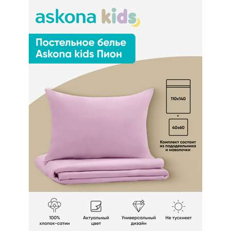 - Единый комплект постельного белья вместе с простыней Askona kids Пион.