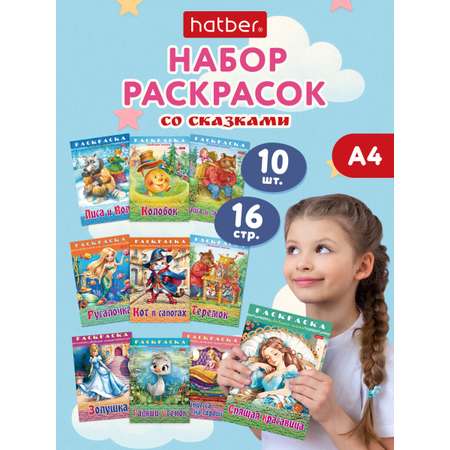 Раскраски детские Hatber для девочек и мальчиков Любимые сказки набор 10 штук