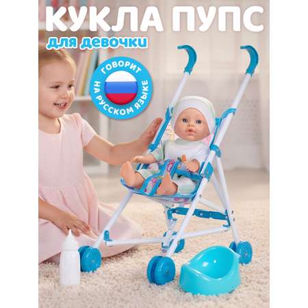Милый малыш с большими выразительными глазами и нежными румяными щечками умеет разговаривать на русском языке и сидеть, его ручки и ножки подвижны, что делает игру по-настоящему увлекательной. Пупсик одет в красивую одежду на липучках. Ребенок сможет легко переодевать карапуза, а также придумывать новые наряды.