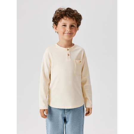 Детский лонгслив для мальчика изготовлен из качественного трикотажного полотна, которое прекрасно подходит для повседневного ношения. Модель посадки comfort предполагает свободный крой, приспущенную линию плеча, а также увеличенные объем и длину рукава. Всё это делает лонгслив невероятно удобным для подвижных непосед и комфортно садится на разные типы фигуры. Спереди расположена короткая застежка-планка на две пуговицы, которая облегчает одевание. Акцент добавляет накладной карман с пуговицей. По низу изделия нашит декоративный патч с надписью "CREATE YOUR OWN ROUTE" [англ. - "Создай свой собственный путь"]. Лонгслив представлен в двух стильных цветах: терракотовом и светло-бежевом. Комбинируйте модель в повседневном образе с любимыми джинсами и кедами.