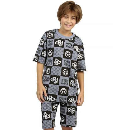 Пижама для мальчика с шортами и футболкой оверсайз серого цвета - идеальный комплект для дома и сна.