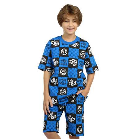 Пижама для мальчика с шортами и футболкой оверсайз синего цвета - идеальный комплект для дома и сна.