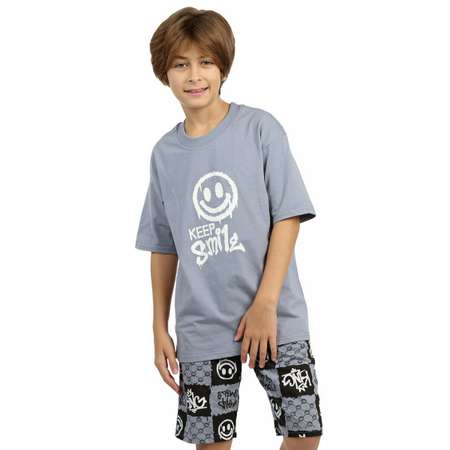 Пижама для мальчика с шортами и футболкой оверсайз серого цвета - идеальный комплект для дома и сна.