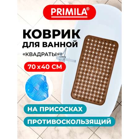 Коврик для ванной противоскользящий PRIMILA — надежное решение для безопасности и уюта в ванной комнате. Этот резиновый коврик в ванную и душевую кабинку размером 70х40см изготовлен из прочного ПВХ и оснащен присосками, которые надежно фиксируют его на гладкой поверхности ванной, предотвращая скольжение. Прямоугольная форма с закругленными углами и стильный рисунок в виде квадратов делают его не только практичным, но и эстетичным аксессуаром для ванной комнаты. Мягкая фактурная поверхность с массажными выступами и отверстиями обеспечивает комфорт и легкий массаж ступней во время купания. Такой коврик в ванну противоскользящий станет отличным выбором для всей семьи, включая детей, благодаря безопасности и удобству использования. Легко очищается и быстро сохнет, поддерживая гигиену и порядок в ванной. Этот коврик — идеальный аксессуар для ванной, который сочетает в себе удобство ковра и надежную защиту от скольжения. • Назначение: в ванну. • Размер коврика для ванной (ДхШ): 70х40 см. • Размер коврика для туалета (ДхШ): - см. • Толщина: 0 мм. • Количество в комплекте: 1 шт. • Цвет: светло-коричневый. • Особенности: на присосках. • Серия: Стандарт. • Дизайн: Квадраты. • Материал: ПВХ. • Артикул производителя: 700367.Характеристики