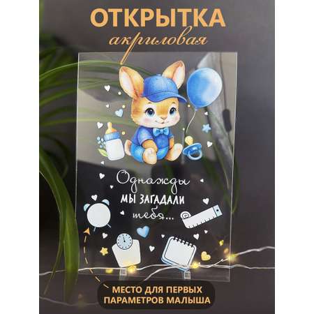 Появление малыша — значимое событие, которое хочется запомнить в мельчайших деталях. Открытка из акрила в формате А5 (140х200 мм) создана для того, чтобы сохранить память о первых мгновениях жизни малыша. Для это предусмотрено место для записи самых важных параметров: даты и времени рождения, роста и веса новорождённого. Это не просто сувенир, а трогательный символ начала новой истории семьи, который можно поставить на полку или в шкаф, превратив в часть интерьера. Подставка для открытки идет в комплекте. Акриловая поверхность придаёт изделию современный и лёгкий облик, а продуманная композиция делает его гармоничным украшением интерьера детской комнаты. Материал долговечнее бумаги, поэтому изделие не боится ни времени, ни влаги. Современный стильный вариант для поздравления. Открытка в роддом станет прекрасным подарком для новоиспеченных мамы и папы. Подойдут открытки для фотосессии малыша. Открытки для новорожденных фотосессии создадут особую атмосферу и помогут подчеркнуть нежность момента. На таком фоне фотографии получатся живыми и яркими. Открытка на выписку из роддома как памятная реликвия, которая будет радовать долгие годы. Родители смогут показывать её ребёнку, когда он подрастёт, рассказывая историю его появления на свет. Для бабушек и дедушек это особенный знак внимания, ведь они тоже хотят сохранить память о первых мгновениях жизни внука. Для друзей семьи это возможность поздравить близкую пару с рождением сыночки и подарить подарок, который выделится на фоне привычных игрушек и одежды.