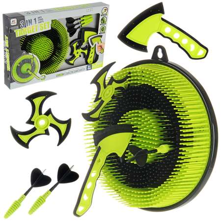 "4 игры в одном наборе, дартс, сюрикэндзюцу, метание топориков, cтрельба из лука. Снаряды для метания имеют мягкие элементы, безопасно для ребенка. Мишень легко собирается, можно отделить мишень от подставки. Интересная задумка, качественные и долговечные материалы, простой принцип работы, отличный набор для игры всей семьей. Помогает в развитии важных навыков и поддержании хорошей физической формы.