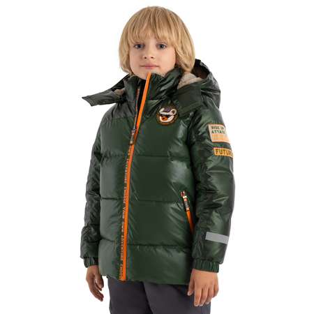 Зимняя куртка для мальчика из влагозащитной, грязеотталкивающей, не продуваемой мембранной ткани 5000мм/5000г/м2/24ч в стильном цвете хаки, имеет утеплитель – искственный пух весом 280г/м2. Куртка дополнена подкладкой из шерпы в капюшоне, воротнике и по верхней части изделия. Съемный капюшон имеет регулируемую кулису по краю. Высокий воротник, внутренние манжеты и водонепроницаемые молнии надежно защищают от ветра. Куртка имеет функциональные карманы, светоотражающие принты сзади и на рукаве для защиты ребенка в темное время суток. Декорирована стильными патчами на груди и рукаве.