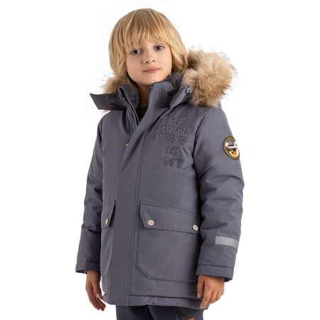 Зимняя удлиненная куртка для мальчика из влагозащитной, грязеотталкивающей, не продуваемой мембранной ткани 5000мм/5000г/м2/24ч, имеет утеплитель 280г/м2. Куртка дополнена подкладкой из шерпы в капюшоне, воротнике и верхней части изделия. Съемный капюшон имеет регулируемую кулису по краю, и декорирован отстегивающимся мехом. Высокий воротник, манжеты из риба и ветрозащитная планка на липучках надежно защищают от ветра. Куртка имеет два накладных кармана, и светоотражающие принты сзади и на рукаве для защиты ребенка в темное время суток.