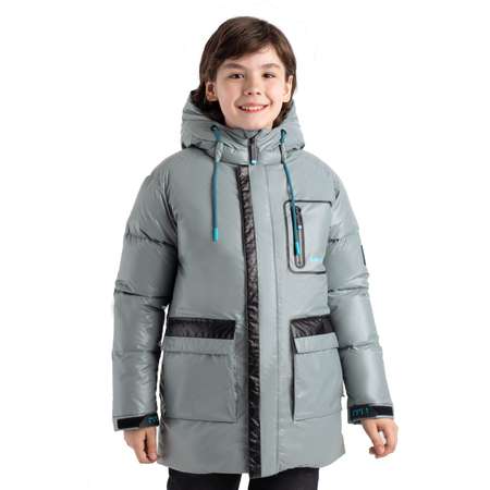 Стильная удлиненная куртка из ткани серого цвета с водоотталкивающим покрытием из полиуретана, имеет утеплитель - искусственный пух весом 300г/м2. Оптимальная длина, цельный капюшон, внутренние манжеты, регулировка манжет на липучке и внешняя и обеспечивают защиту от холода и ветра. Зимняя куртка декорирована контрастной фурнитурой, принтами и силиконовым патчем. Рефлективная подкладка с фольгированным принтом (OMNI-HEAT) эффективно удерживает тепло внутри.