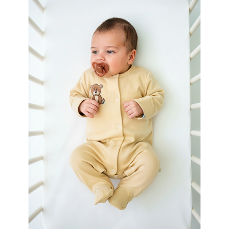 Детский слип для новорожденных и малышей выполнен из гипоаллергенного 100% хлопка, материал средней плотности, нежный и эластичный, пропускает воздух и сохраняет тепло.