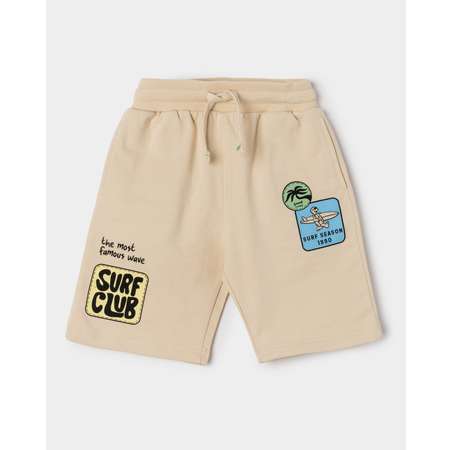 Бежевые шорты для мальчика Futurino, декорированные цветным принтом с надписями.