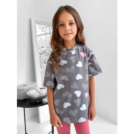 Мягкая футболка из кулирной глади — идеальный выбор для повседневной носки. Изготовлена из натурального трикотажа с милой набивкой в виде сердечек, что добавляет образу игривости и настроения. Ткань дышит, не вызывает раздражения и отлично подходит для чувствительной детской кожи. Благодаря составу 100% хлопок футболка остаётся мягкой даже после множества стирок.