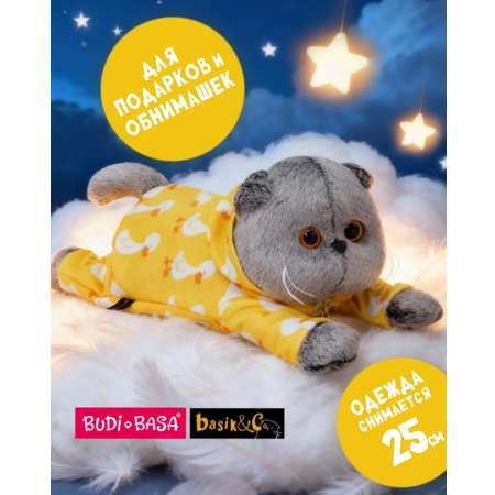 Очаровательный Кот Басик от Budi Basa удобно устроился в уютном комбинезоне с капюшоном. Комбинезон выполнен из мягкого трикотажа с лёгким начёсом и украшен авторским принтом Гусик, который делает образ стильным и современным. Застёжка-молния спереди позволяет легко снимать и надевать костюм, а сама расслабленная поза Басика добавляет сплюшке особого очарования и делает её идеальной для обниманий и спокойного отдыха. Плюшевая игрушка имеет размер 15х25х15 см.