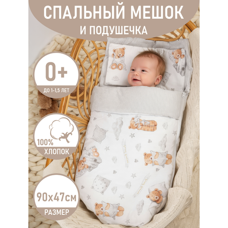 Спальный мешок для новорожденного Сплюшик изготовлен из гипоаллергенного хлопка с утеплителем. Спальник детский может использоваться на улице в коляске в прохладную погоду, дома, чтобы малыш не сбрасывал одеяло и не мёрз. Так же, как дополнительный слой зимой. Конверт детский для малыша идеален для выписки из роддома, приятные расцветки отлично смотрятся на фотографии.Подарочный комплект для новорожденного имеет подушечку для комфорта малыша. Она соответствует требованиям для новорожденных, высота не более 2,5 см. Размер подушки 39*20 см. Утепленное одеяло мешок имеет утеплитель синтепон 200 гр., этого достаточно для прохладного лета и межсезонья дома. Так же может использоваться, как дополнительный слой в теплый конверт зимой.Детский спальный мешок имеет универсальный размер 90*47 см, подходящий для кроваток и колясок. Ребёнок сможет спать в нём с рождения до 2-х лет. По обеим сторонам вшиты молнии, что позволяет быстро одеть ребенка, не потревожив сон малыша. Спальный мешок цельный, не имеет разделения на матрас и одеяло. Так как одеялко получается слишком маленькое и не функциональное, а конверт с подушечкой можно использовать как матрасик в цельном виде, причем молнии не будут мешать и натирать. Цельный конверт позволяет Вам сэкономить средства и при этом получить продуманную и функциональную вещь. По сравнению с аналогами отворот одеялка закреплен сразу, нет нужды придумывать как и чем его закрепить. При необходимости отворот можно легко открепить. Комплект для сна всесезонный: осень, зима, весна, лето (прохладное лето и дополнительный слой зимой).Спальный мешок для малыша можно стирать в стиральной машине в режиме деликатной стирки при температуре не выше 40 гр. Отжимать на средних оборотах. Сушить в расправленном виде. Машинная сушка не рекомендуется.Комплект на выписку для новорожденных - это прекрасный подарок молодым родителям на выписку на рождение ребенка.