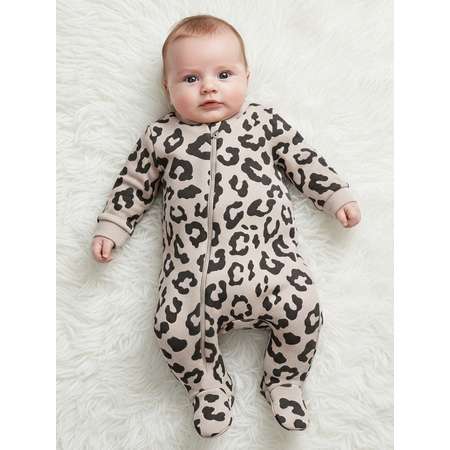 Комбинезон для девочки футер трехнитка начес. Комбинезон на молнии, с закрытыми ножками. Слип с рисунком леопард Вам должен понравиться. Молния имеет защиту от прищемления. Футерный слип создаст теплоту комфорт при ношении.